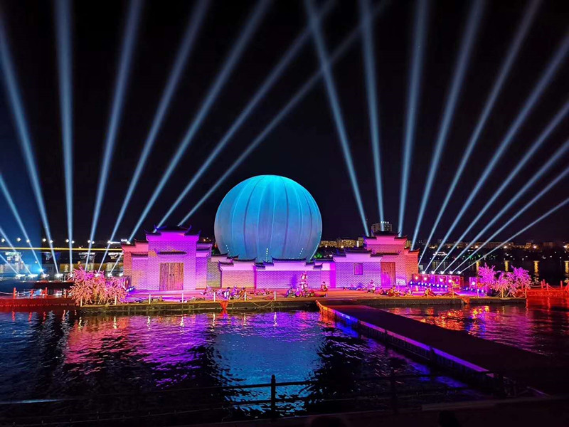 為達到節目效果,并為西海灣景區增添新的亮點,《遇見武寧》專建了大劇場,總面積3萬平方米,劇場分業態服務、行政辦公、演藝舞臺、音樂噴泉等功能區,其中演藝舞臺面積4000平方米,可同時容納600名觀眾觀看演出。