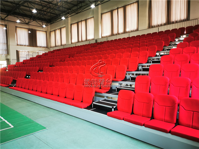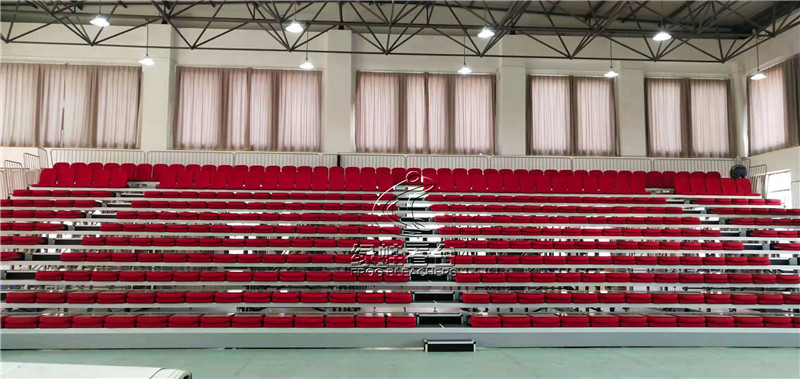 看臺類型:前置式高靠背折疊翻板軟包椅電動伸縮看臺