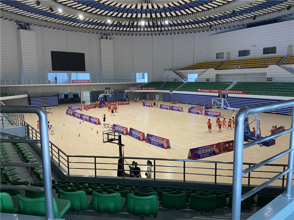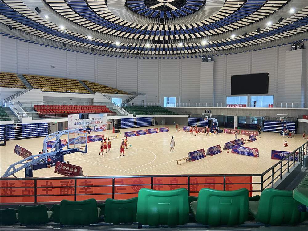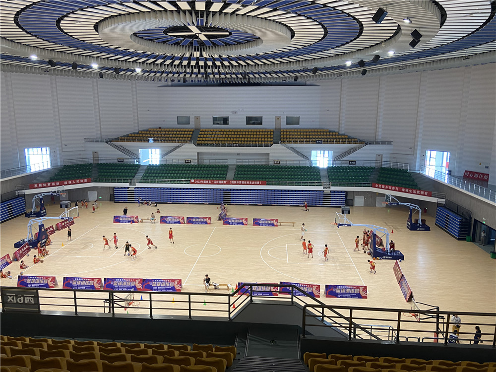 灌南體育中心各項配套設施的完善可以有效地將體育賽事、全民健身、專業場館等功能有機結合。將極大的豐富人民群眾的業余文化生活。而體育館看臺座椅的安裝施工由廣州綠蛙承接,看臺主要為固定看臺與伸縮看臺,最大程度的利用場地空間,使場館可以容納更多的觀眾,同時更注重座椅設備的安全,經過嚴謹的安裝調試,該體育館看臺座椅項目已順利完成,更好的支持江蘇灌南縣的體育事業。