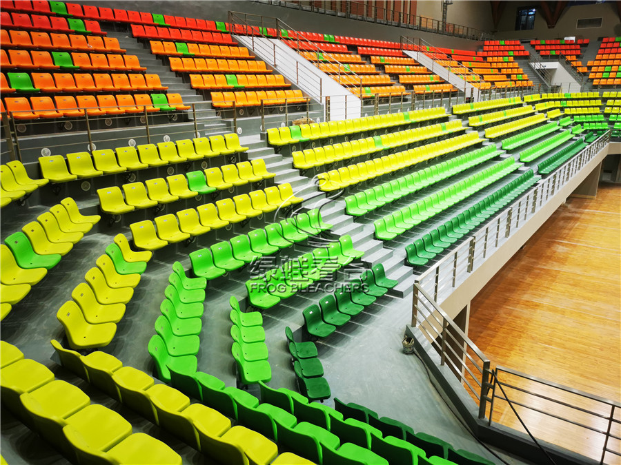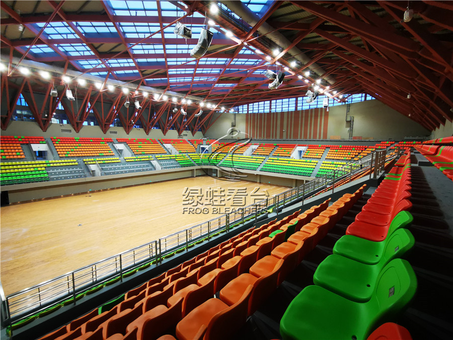 綠蛙承接了中國科技大學體育館看臺座椅安裝項目,安裝使用了多彩的座椅顏色,既包含了早春的青、盛夏的綠、再有秋天的楓葉紅,顏色層層遞進又互相浸染,在觀看體育比賽的同時感受色彩的美,更能體現出科技大學的活力及氛圍。