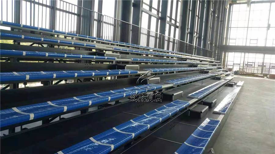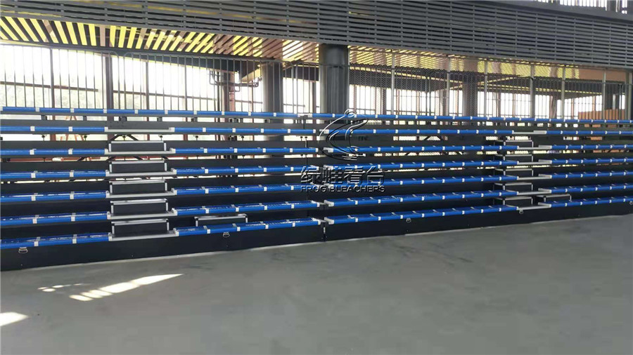綠蛙看臺承接了湘鄉市名民實驗學校搭建伸縮看臺的項目,7層的可伸縮收納的看臺座椅,最大程度的利用場地空間,讓學生可以在更寬廣的場地活動參與體育運動。而在觀賽中,穩固安全的座椅可以承載更多的觀眾學生,讓觀眾可以更好的融入到比賽當中。