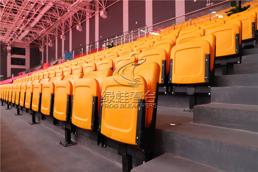 二層、三層為固定看臺,采用的是與活動看臺座椅同造型的彈簧翻板座椅,站立式安裝。座椅的設計、造型及安裝方式均符合國際通用要求,既造型美觀又座感舒適,同時兼顧便于安裝維護和管理,并配置牌位號牌。座椅根據人體工程學設計,線條流暢簡潔,材料采用進口高密度聚乙烯和優質的色母顆粒,中空吹塑工藝制作而成。5年以內不退色。為避免干擾,座椅采用無扶手翻板椅,每張座椅一個套支架。座椅采用高密度聚乙烯中空吹塑工藝制作而成。座椅要求:立式座椅支架材料為60*40*2mm矩管;所有鋼構件均經酸洗磷化后再進行360°全方位經熱浸鋅處理,座板翻轉采用重力翻折作用,配有消音裝置,保證回翻過程的安全性和靜謐感。