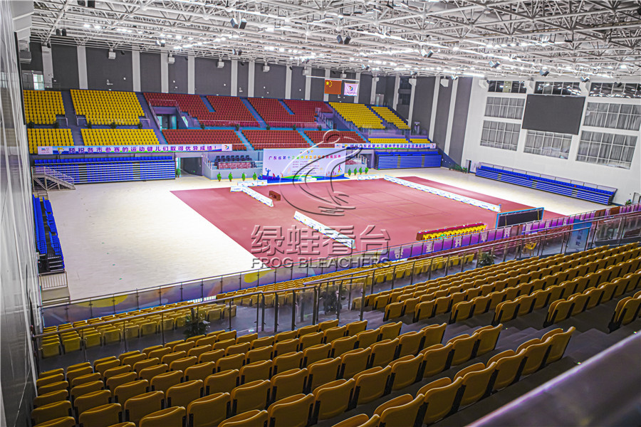 韶州體育公園項目是韶關市“一橋三園三路”項目的重要工程,項目總建設面積3.78萬平方米,綠蛙看臺參與安裝的有兩處。第一部分是坐席6000座的甲級體育館,建筑面積約2.7萬平方米。