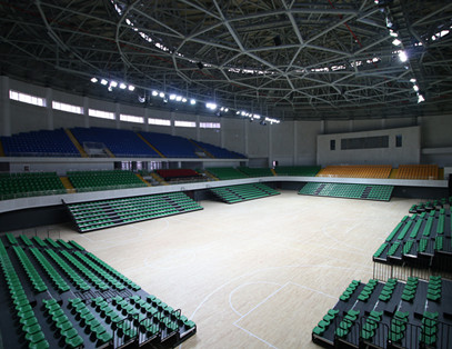 學院新建體育館,看臺座椅由綠蛙公司中標,本場館觀眾固定看臺座椅3000多位,伸縮看臺1000多位,還有貴賓席,主席臺坐席,看臺完工后,整體美觀大氣,值得其他待建場館借鑒。