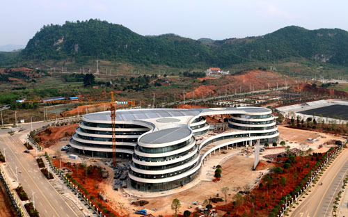臨武縣文體廣電中心,集體育運動、會議室、影院廳、網絡機房、電視接等各項功能于一體。該中心看臺分別設有觀眾固定看臺、伸縮看臺、主席臺、演播廳看臺。