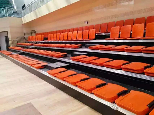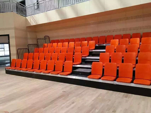 固定看臺采用中靠背側裝支架座椅,伸縮看臺采用高靠背翻板折疊椅,顏色采用綠橙搭配,整體美觀大氣。