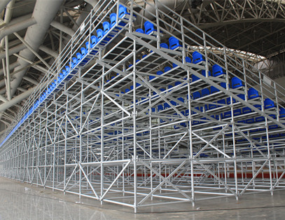 南京青奧會馬術館看臺采用可拆卸拼裝看臺,可拆卸拼裝看臺是一種新型的臨時看臺系統,整體結構采用標準件、模塊化設計,看臺的各種部件,如支架,踏板,側板,護欄,座椅等,皆可隨意 搭配組裝,可根據場地及觀眾席位需要進行各種層高、位數的拼裝組合。具有結構簡單,搭建及拆卸方便,便于運輸及儲存等特點,可廣泛應用于體育場館,演藝活動,各種公開活動等臨時需要搭建觀眾看臺的場所。