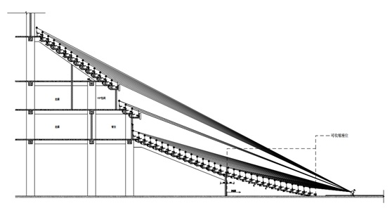 2)視線:由觀眾眼睛至場地設計視點的連線。看臺有可變性、觀眾視線 無遮擋、觀眾視覺質量好,優良視線座席應占90%以上。