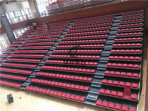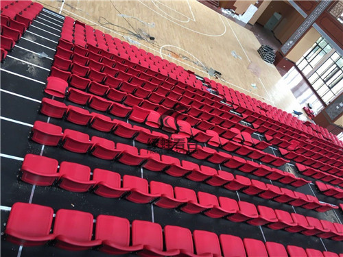 湛江市北大附校體育館是復(fù)合式電動(dòng)伸縮看臺(tái),看臺(tái)上配用前置式中空吹塑折疊翻板椅,場(chǎng)面壯觀,氣勢(shì)恢宏。