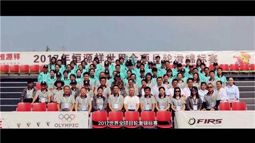 2017年世界全項目輪滑錦標賽于9月10日圓滿落幕,組織方在綠蛙看臺上留影紀念。