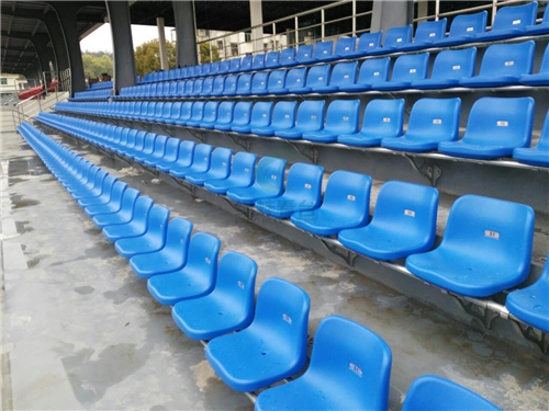 觀眾席采用的是綠蛙看臺的中空吹塑翻板椅帶扶手-立裝。