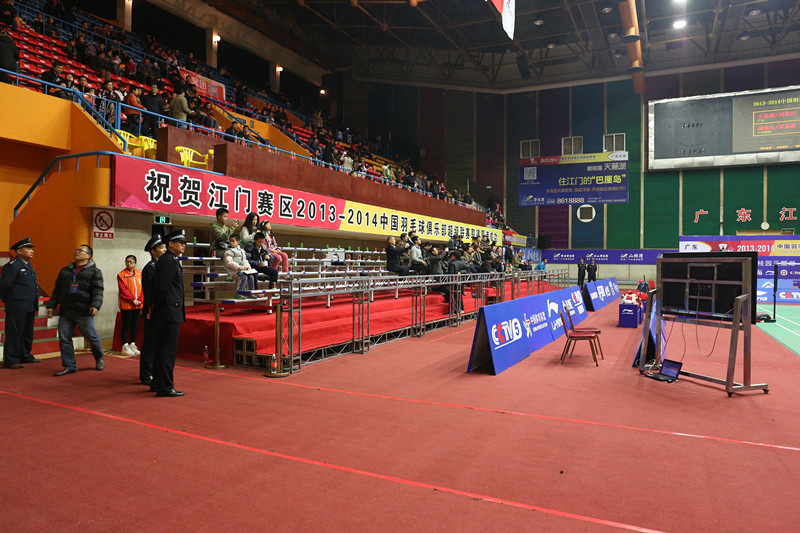 綠蛙看臺為江門賽區體育館提供鋁合金簡易看臺,見證羽毛球聯賽在國內的發展。