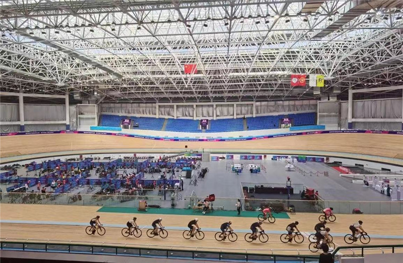 9月10日至14日,中華人民共和國第十四屆運動會“巴迪瑞杯”場地自行車比賽,將在洛陽市體育中心自行車館舉行。場館位于體育中心北部,主體建筑共三層,占地面積 4.08 萬㎡ ,可容納觀眾 3000 余人。場地中的觀眾看臺座椅由綠蛙看臺承接安裝調試,綠蛙看臺全力配合,積極完成項目場館安排的各項工作,助力第十四屆全運會的順利開展。