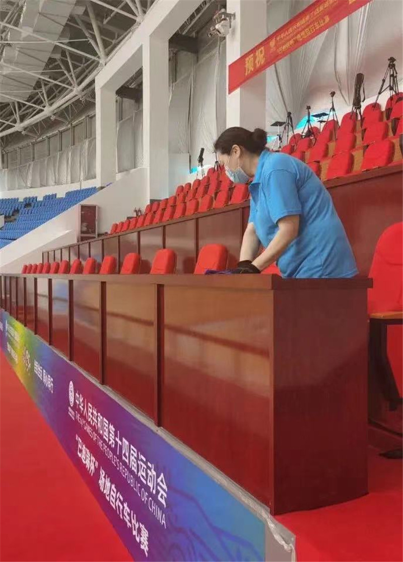 匠心顯真情,綠蛙看臺不分晝夜辛苦勞動,為場館、觀眾提供良好的環境,用實際行動詮釋匠人精神。