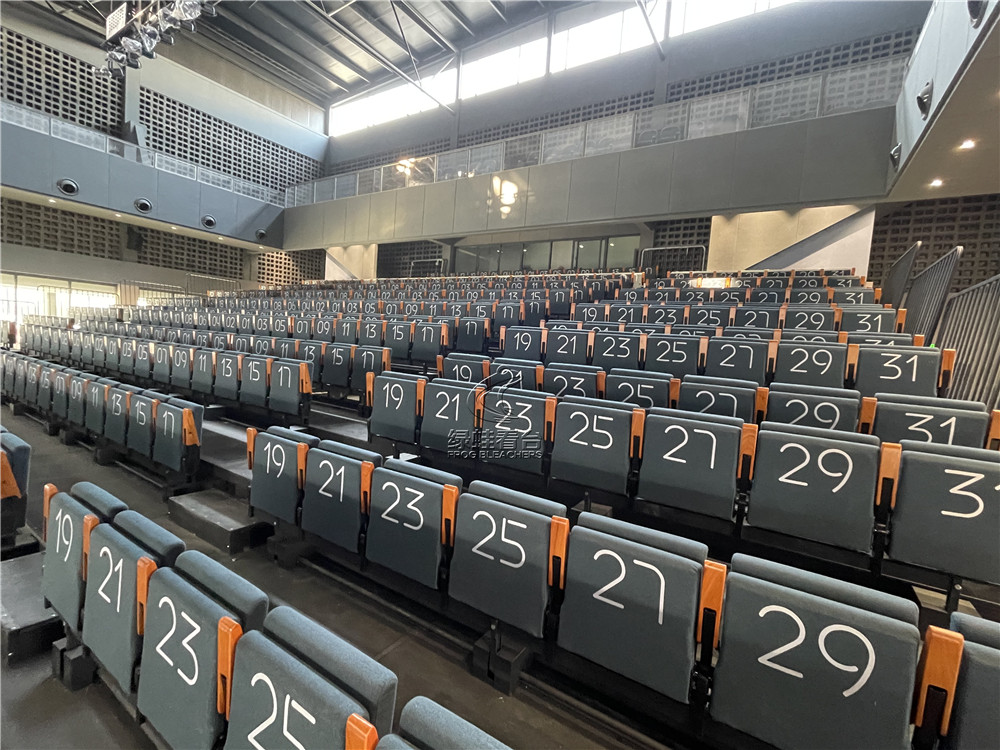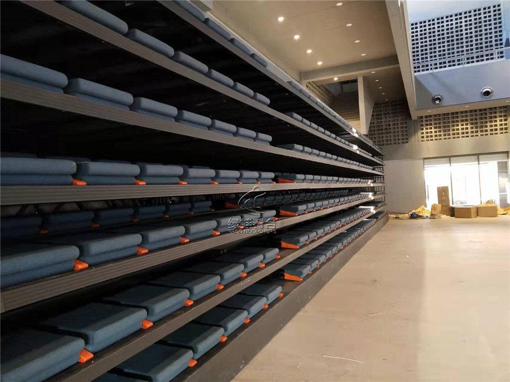 綠蛙看臺承接了鄭州彩虹盒子藝術園的室內電動看臺座椅安裝調試項目,采用了一層雙排后置式軟包電動伸縮看臺,共448位(踏步20級),最大化的利用空間面積,同時兼顧觀眾的使用體驗及安全性能。