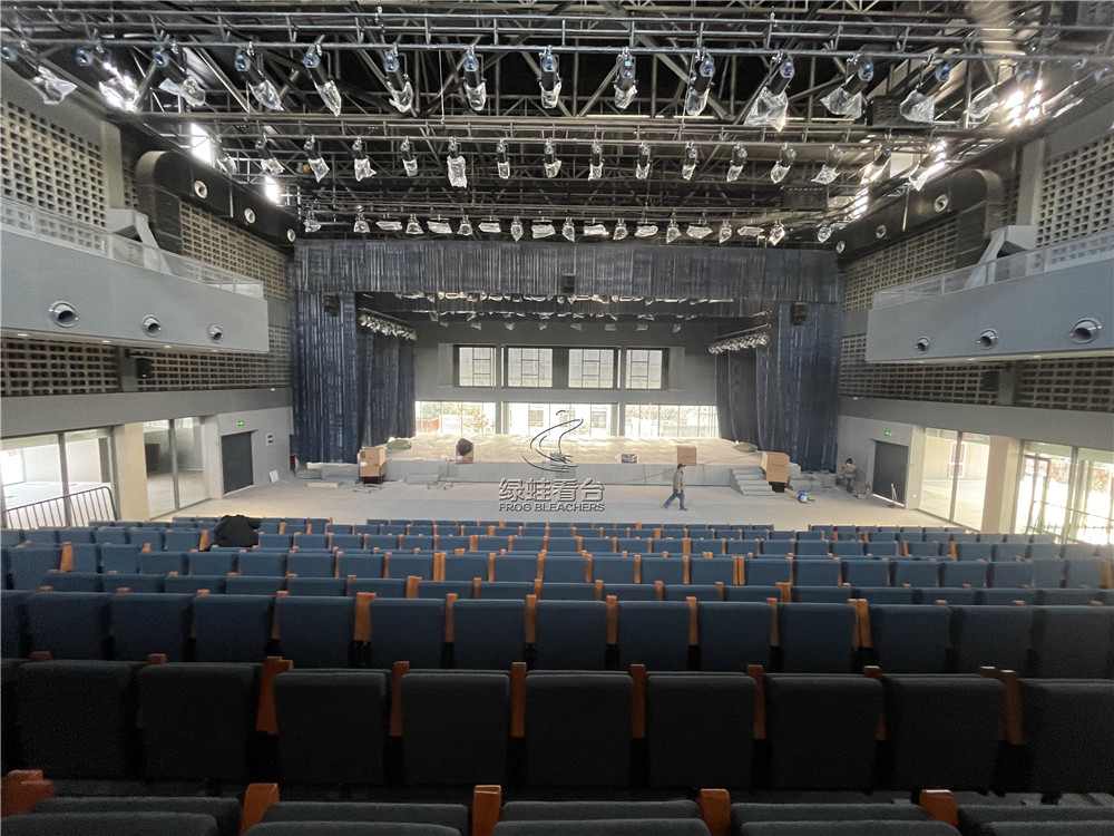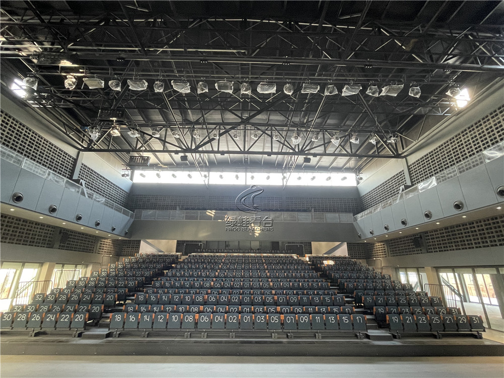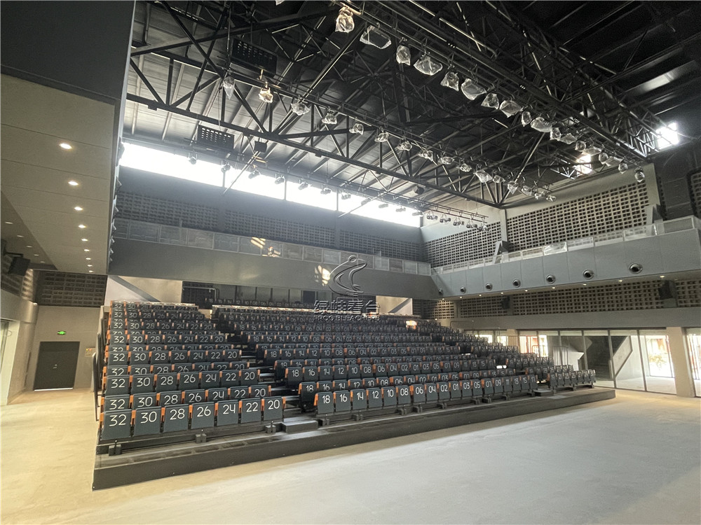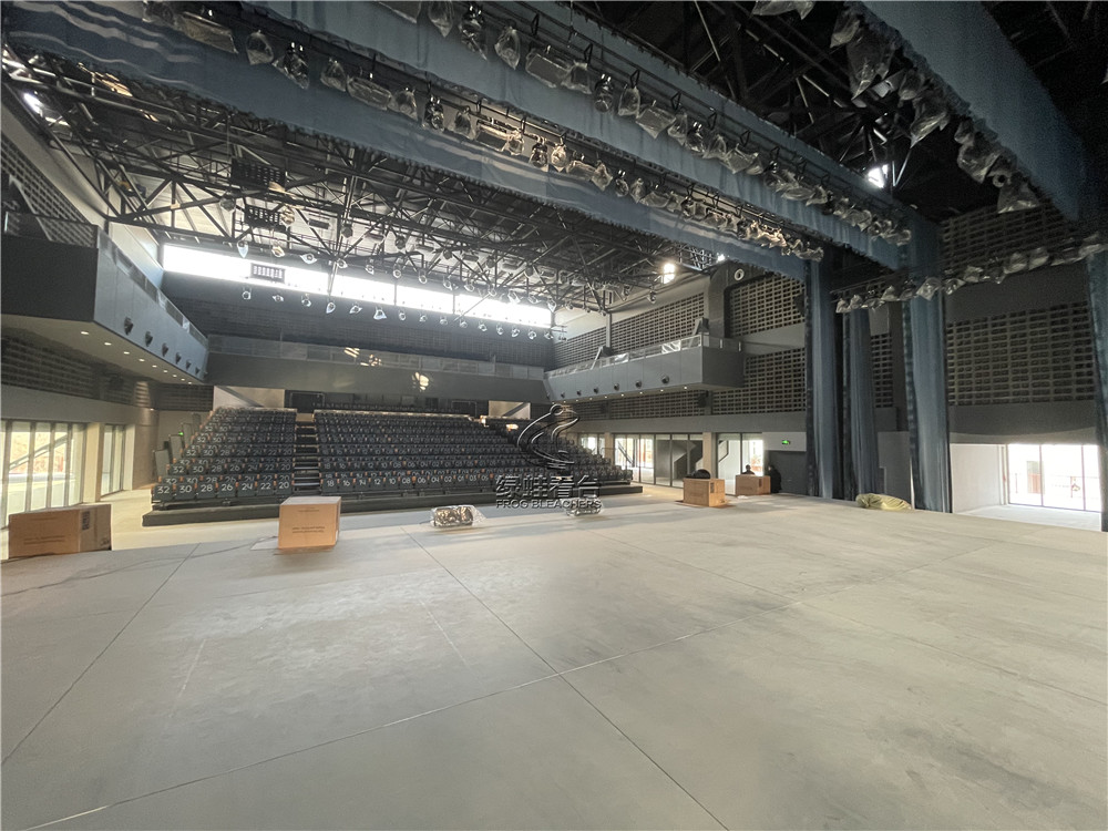 綠蛙看臺承接鄭州彩虹盒子藝術園的室內電動看臺座椅安裝調試項目