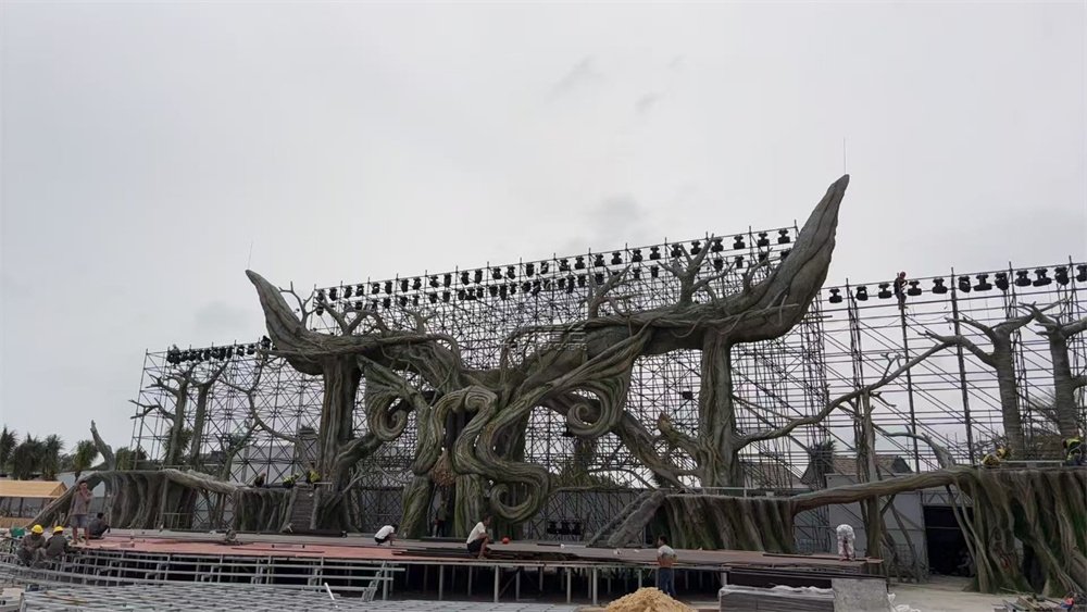 今年以來(lái),運(yùn)營(yíng)方不斷推陳出新,計(jì)劃在此地推出大型實(shí)景演出《三亞夜未眠-沉浸式愛(ài)情部落》,為這座不夜城注入更多浪漫與藝術(shù)的元素。十月的海風(fēng)輕拂,施工現(xiàn)場(chǎng)卻是一片熱火朝天的景象:舞臺(tái)、燈光、音響和看臺(tái)等各項(xiàng)設(shè)施正緊鑼密鼓地進(jìn)行著最后的布置與調(diào)試。工人們穿梭其間,細(xì)致地安裝每一個(gè)部件,力求在演出開(kāi)幕前,將這片區(qū)域打造成一個(gè)完美的藝術(shù)空間,讓觀眾仿佛置身于一個(gè)夢(mèng)幻的愛(ài)情部落。