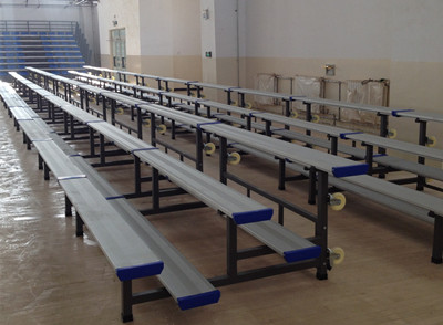 綠蛙可移動鋁制看臺,主要由鋼制(鋁制)支架、鋁合金座板、踏板和腳輪構成,具有可翻轉,移動方便,容易存 放等特點,方便客戶臨時增加座椅。