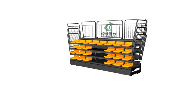 伸縮看臺又稱活動看臺,伸縮看臺拉伸成臺階形時,翻起座椅供觀眾舒適地欣賞節目,收縮成匣子狀時則占用很少的空間,讓出場地以安排他用。伸縮看臺可充分利用室內的有限面積,滿足不同功能情況下的多座位要求。