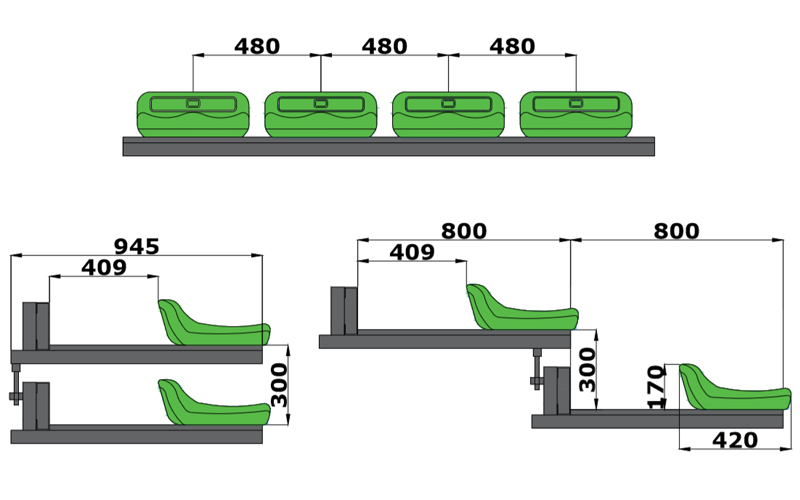 此伸縮看臺配單體座位座椅,座椅有180mm靠背,能緩解觀眾長時間觀看疲勞;是最通常的前置式看臺,性價比高、座椅故障率低;看臺收回后整體美觀大方。