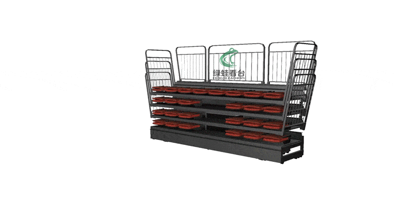 伸縮看臺又稱活動看臺,伸縮看臺拉伸成臺階形時,翻起座椅供觀眾舒適地欣賞節目,收縮成匣子狀時則占用很少的空間,讓出場地以安排他用。伸縮看臺可充分利用室內的有限面積,滿足不同功能情況下的多座位要求。