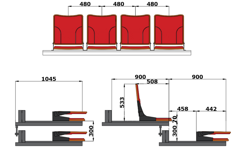 前置式高靠背軟包翻版椅伸縮看臺