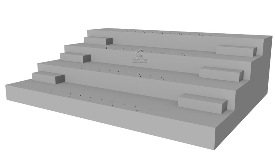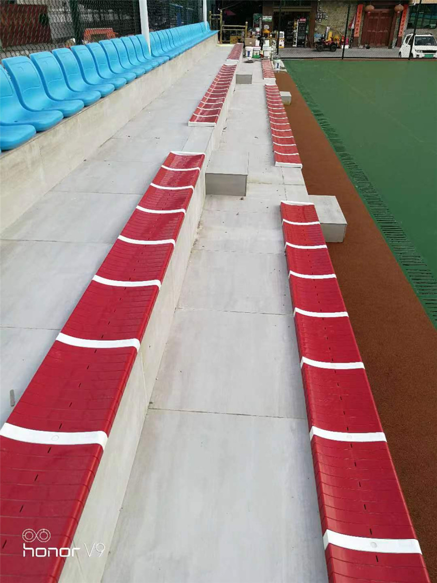 1)量出需要安裝座椅的區段的尺寸,一般是指固定看臺踏步通道與踏步通道之間的區間,然后對照設計圖紙,看需要多少個支架腿,分布好(FrogSport)。