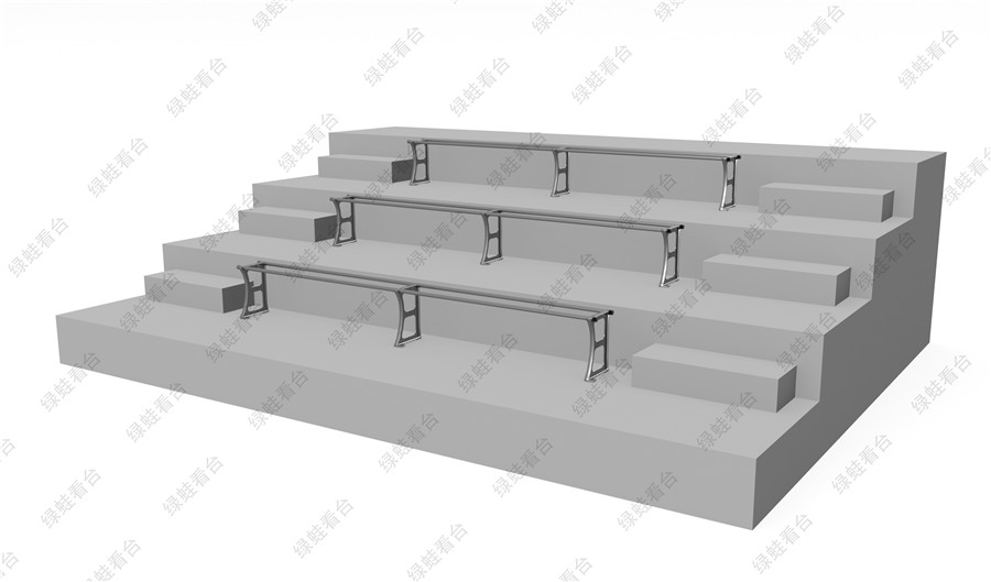 1)量出需要安裝座椅的區段的尺寸,一般是指固定看臺踏步通道與踏步通道之間的區間,然后對照設計圖紙,看需要多少個支架腿,分布好(FrogSport)。
