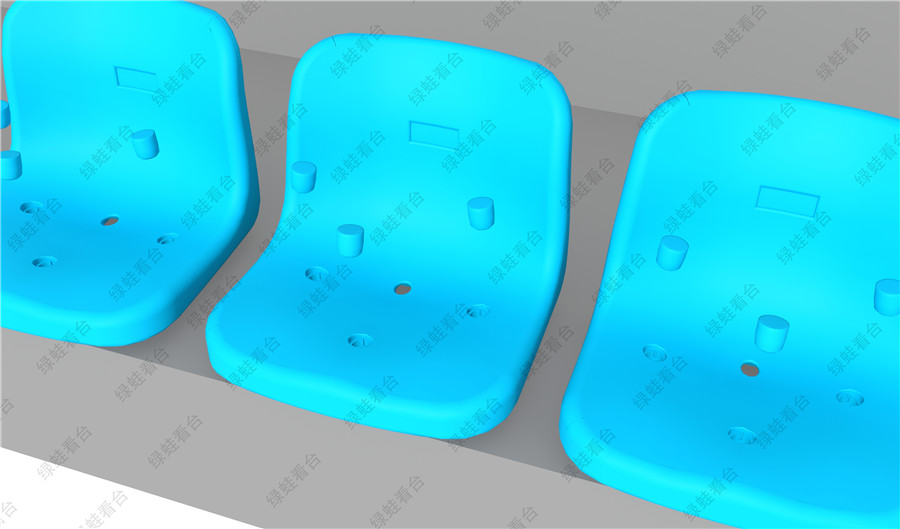 座椅的靠背處有號碼牌預留位,座板后端中間處有漏水孔。這樣在室外的看臺不會因為下雨存水。