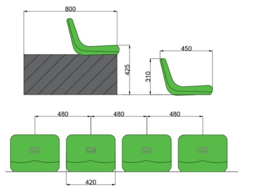 座椅使用壽命可達15年甚至更長。抗UV材料讓座椅抗老化,不易褪色。顏色可以保持5年不褪色。綠-蛙座椅的耐老化性能:座椅需符合氙燈老化3500h,試驗后沖擊強度保持率不應小于60%,外觀顏色變化評級不小于4級;