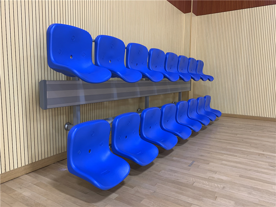 綠蛙簡易看臺在鋼架和鋁合金板位基礎材料,搭配的座椅款式可選。兩層鋁合金簡易看臺-中靠背中空吹塑椅,該款式座椅采用中空吹塑工藝制作而成。座椅整體設計按照人體工程學,最大限度貼合人體曲線,達到坐感舒適,減少坐姿疲勞。座椅機械性能優越,強度高、抗沖擊性、安全性、耐候性好,化學性能穩定,耐酸堿,抗靜電,耐磨,憎水,顏色穩定。綠/蛙座椅設計、造型及安裝方式符合國際通用要求,既造型美觀,又坐感舒適,同時便于安裝、維護和管理。