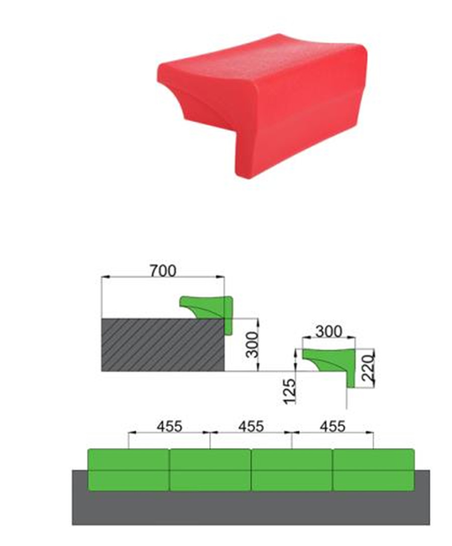 活動看臺座椅采用平靠背中空吹塑座椅,前置式安裝。座椅透過兩塊金屬連接片上的安裝孔將座椅安裝在看臺的踏板上。