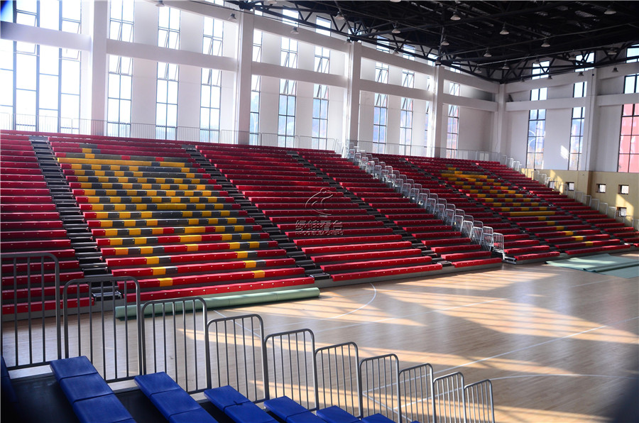 伸縮看臺也稱為活動看臺,活動看臺的稱呼是相對于固定看臺而來,伸縮看臺拉伸成臺階形時,看臺上的座椅供觀眾舒適地欣賞節目,收縮成匣子狀(似抽屜)時則占用很少的空間,讓出場地以安排他用。伸縮看臺可充分利用室內的有限面積,滿足不同功能情況下的多座位要求。伸縮看臺廣泛應用于體育館、會議室、示教室、演播廳、多功能廳等。