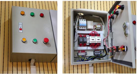 (5)看臺(tái)控制系統(tǒng)包含電機(jī)控制系統(tǒng)、行程限位系統(tǒng)、漏電保護(hù)系統(tǒng)和動(dòng)力輸出系統(tǒng)。 所有電器元件采用通過(guò) 3C 認(rèn)證的電器,輸入線路用三相五線4*4平方國(guó)標(biāo)電纜線。