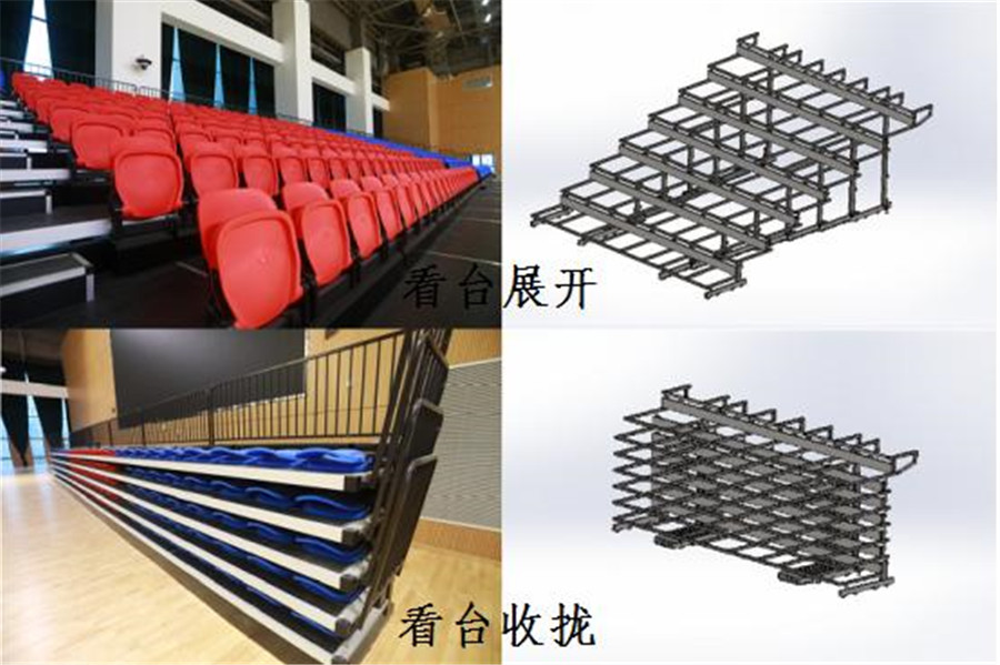 伸縮看臺也稱為活動看臺,活動看臺的稱呼是相對于固定看臺而來,伸縮看臺拉伸成臺階形時,看臺上的座椅供觀眾舒適地欣賞節目,收縮成匣子狀(似抽屜)時則占用很少的空間,讓出場地以安排他用。伸縮看臺可充分利用室內的有限面積,滿足不同功能情況下的多座位要求。伸縮看臺廣泛應用于體育館、會議室、示教室、演播廳、多功能廳等。