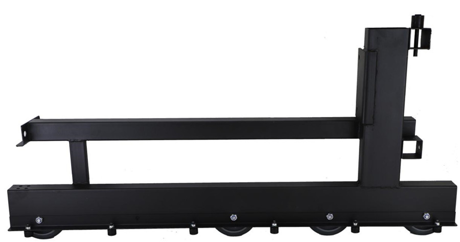(6)看臺(tái)床架結(jié)構(gòu)的下部行走機(jī)構(gòu)(走輪架)需帶糾偏卡槽,床架結(jié)構(gòu)中每排行走腳輪部分應(yīng)有自動(dòng)鎖定裝置,以保證伸縮看臺(tái)順序展開及收合,且展開后不會(huì)出現(xiàn)意外收合情況。看臺(tái)床架結(jié)構(gòu)的下部行走機(jī)構(gòu)(走輪架)由3mm鋼板折彎成“幾”字形,走輪架一側(cè)折成凹型卡槽,另一側(cè)折邊必須安裝數(shù)量不少于5個(gè)的可轉(zhuǎn)動(dòng)的塑膠輪,塑膠輪與相鄰的走輪架凹型卡槽咬合,保證看臺(tái)在伸縮過程中流暢自如。整體安裝要求在2000次展開和收攏后,伸縮軌道仍具有適用性。走輪架截面示意圖: