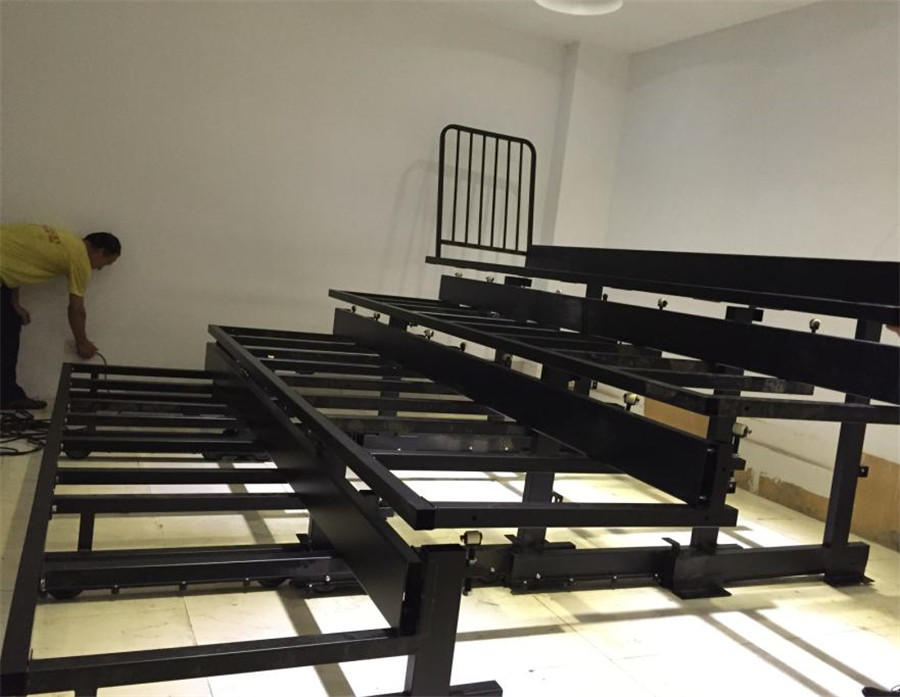 (7)伸縮看臺(tái)首層用1.2mm鋼板封閉,鋼板必須平裝并垂直于地面,不能設(shè)計(jì)有任何凹凸曲面,確保整體美觀大方。