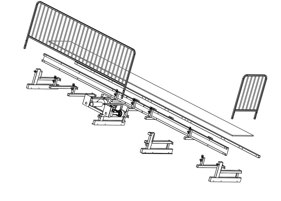 (5)看臺(tái)力學(xué)性能:伸縮看臺(tái)整體架構(gòu)應(yīng)具備較高的、安全的力學(xué)性能,臺(tái)面的承載需滿足觀眾落座的安全要求,并且在觀眾落座后,橫向具有較強(qiáng)的穩(wěn)定性。臺(tái)面靜載荷應(yīng)能承受6KN/㎡的載荷30分鐘,卸載后無明顯變形,無損壞。看臺(tái)展開后,在靜載試驗(yàn)基礎(chǔ)上,在正向及側(cè)向分別施加靜載360N的水平拉力均布載荷,持續(xù)5 min,看臺(tái)位移量小于活動(dòng)看臺(tái)長(zhǎng)度的1/200,且不得傾翻。