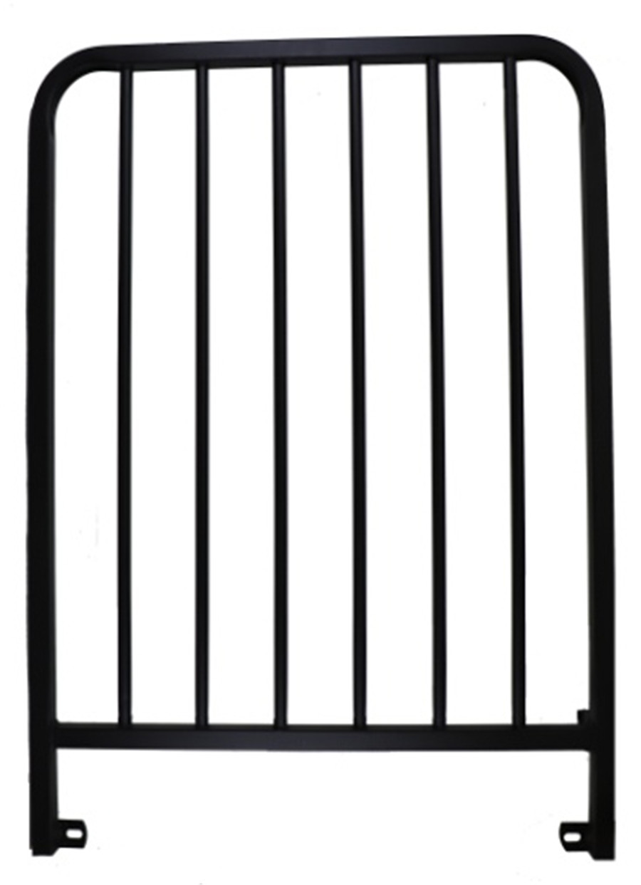 伸縮看臺(tái)床架側(cè)邊無切角部分安裝伸縮型安全應(yīng)護(hù)欄在伸縮的過程中護(hù)欄無需插拔,護(hù)欄的表面采用噴塑處理。看臺(tái)的兩側(cè)每層床架側(cè)邊安裝有斜護(hù)欄,護(hù)欄的高度為1100MM,看臺(tái)的后側(cè)裝有垂直護(hù)欄,護(hù)欄的高度為1100MM,兩側(cè)的護(hù)欄和后側(cè)的護(hù)欄包圍起來兩者之間的空隙不超100MM,護(hù)欄采用鋼結(jié)構(gòu),表面外框采用30mm×30mm家具管彎曲成矩形框,護(hù)欄直角部分做圓弧處理。護(hù)欄框內(nèi)嵌垂直部位采用焊接連接,內(nèi)嵌垂直桿件采用直徑19mm家具管,桿件凈距也不應(yīng)大于100mm。側(cè)護(hù)欄帶有斜角使得每一層的護(hù)欄處于不同立面上,在看臺(tái)伸展收縮時(shí),不同層護(hù)欄不會(huì)互相碰撞,護(hù)欄無需插拔。側(cè)護(hù)欄與床架連接是由三個(gè)螺栓連接,保證護(hù)欄能夠?qū)崿F(xiàn)橫向沖擊不出現(xiàn)斷裂,不出現(xiàn)變形。各護(hù)欄的水平靜載荷應(yīng)能達(dá)到:加載60Kg/㎡30秒,卸載后無明顯永久變形。護(hù)欄的垂直靜載荷應(yīng)能達(dá)到:加載100Kg/㎡1分鐘,卸載后無明顯永久變形。