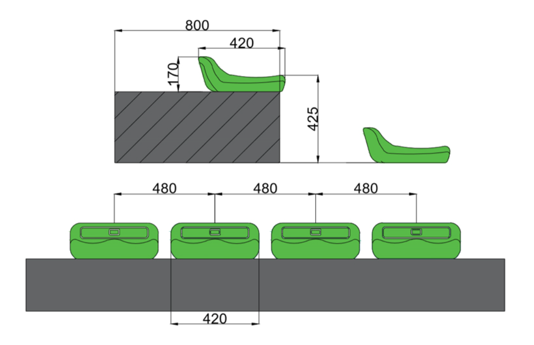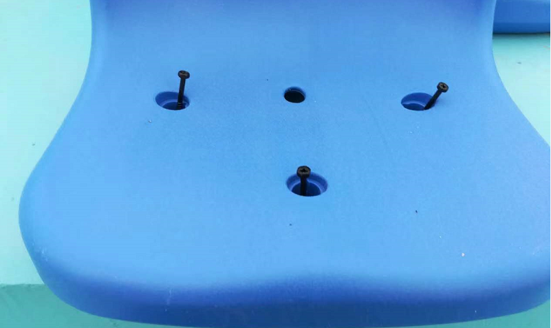 座椅上有三個(gè)安裝孔,透過(guò)座椅安裝孔將座椅直接安裝在看臺(tái)板面上,不需要其他金屬件。該款座椅三個(gè)安裝孔將中空椅的上面和下面連接起來(lái),三個(gè)連接結(jié)構(gòu)就是三個(gè)支撐點(diǎn),使得該款綠-蛙座椅有相比其他中空吹塑椅更為優(yōu)越承重性能。
